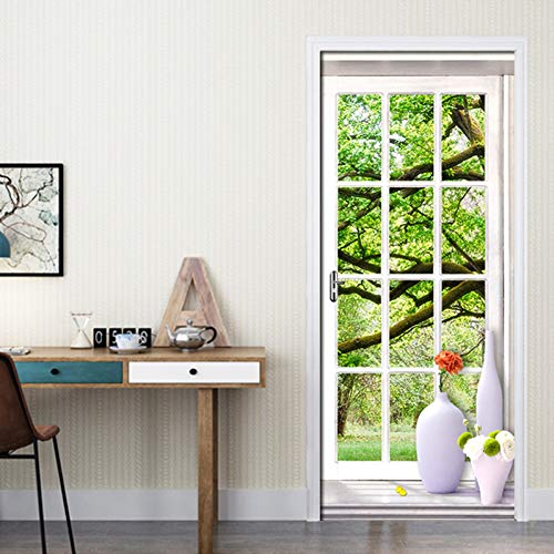 NSDX Adesivi per Porte Scenario 3D Fuori dalla Finestra Adesivi per Porte Adesivo da Parete in Stile Europeo per Camera da Letto Soggiorno Paesaggio Decalcomanie Impermeabili 3D
