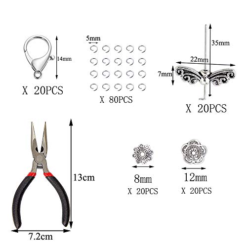 Set perfetto per realizzare ciondoli di perle d'angelo fai-da-te, tra cui ali di angeli, perline colorate, anelli di apertura, fermagli per aragosta, spilli, cappucci di perline di metallo e pinze.