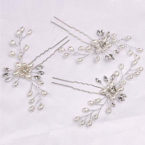 Il set di accessori per capelli da sposa include 1 pezzo di perle fascia 50 cm e 4 pezzi di forcine, color argento. Decorato con perle, strass, ti semplifica la creazione di acconciature fai-da-te.