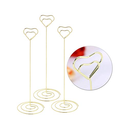 Bellissime clip fotografiche da tavolo con supporto a forma di cuore e base a spirale. Sembra bello con i numeri dei tavoli al matrimonio o al ricevimento.