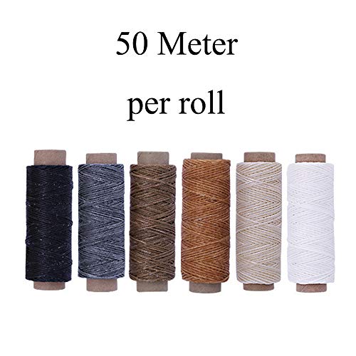 Filo cerato per cucire a mano in 6 colori, 150D / 16, 0,8 mm di diametro, ogni rotolo di circa 50 metri, liscio e resistente.