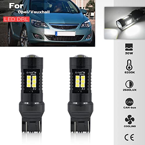Nslumo Lampadine LED DRL Daytime Running Light T20 7443 W21/5W Per Opel Vauxhall Astra J 2 Pz Xenon Bianco Canbus LED DLR City Lampadine