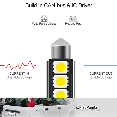 ✅La confezione include: 2 lampadine per luci targa posteriori super luminose per Fiat Panda Mk4, 1 anno di garanzia.