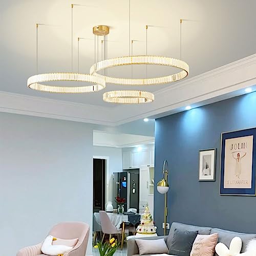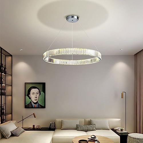 NSXBY Lampadario di Lusso scandinavo, Lampada di Cristallo Circolare di Lusso Leggera, lampadario di Cristallo Semplice Arte Moderna, per Camera da Pranzo Studio Soggiorno Illuminazione,d'oro,80cm