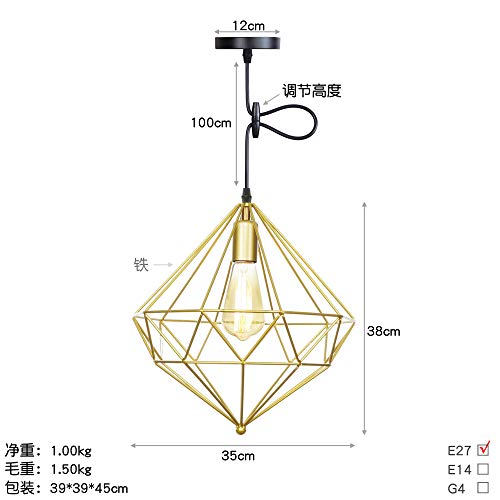 NSZHDY Luce del Pendente dell'Annata, Retro Industriale Metallo Bird Cage Apparecchio lampadario in Stile Nordico per soppalco Camera da Letto Ristorante Coffee Bar (Golden)