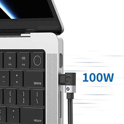 NTONPOWER Cavo USB C 2 Metri, Cavo USB Type-C 90 Gradi, 100W PD Cavo USB C USB C Ricarica Rapida per Laptop, Cavo Dati USB Type-C USB 2.0, Cavo di Ricarica USB-C Intrecciato- Nero
