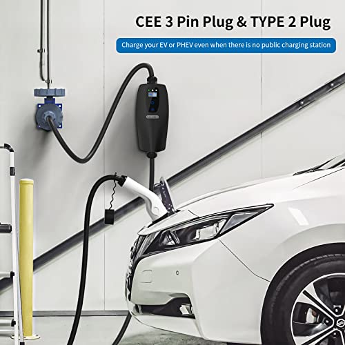 CEE & Tipo 2: il cavo di ricarica da 5m utilizza una spina CEE a 3 poli, che consente di ricaricare l'auto senza stazione di ricarica ed è adatto a tutte le auto di Tipo 2 secondo lo standard europeo. Può essere ricaricato ovunque ci sia una presa CEE.