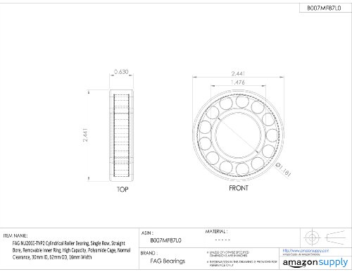 FAG NU206E-TVP2 cuscinetto a rulli cilindrici, singola fila, foro diritto, anello interno rimovibile, alta capacità, gabbia in poliammide, spazio normale, ID 30mm, diametro 62mm, larghezza 16mm