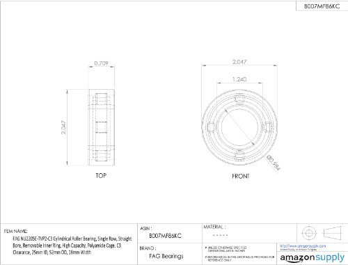 FAG NU2205E-TVP2-C3 Cuscinetto a rulli cilindrici, singola fila, foro diritto, anello interno rimovibile, alta capacità, gabbia in poliammide, spazio C3, ID 25mm, 52mm OD, larghezza 18mm