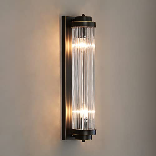 NUACOS Lampada da Parete Cristallo Applique da Parete Moderna Orientabile E14 Illuminazione Interni Lampada Muro per Soggiorno Camera Letto Bagno Corridoio,Nero,12x40cm