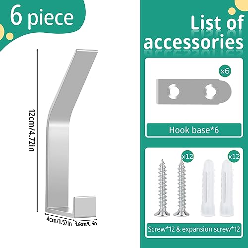 Nuangoo 6 Pezzi Appendiabiti da Parete,Per giacche, cappotti, sciarpe, borse, ecc. Ganci per cucine, porte, bagni, atri e corridoi