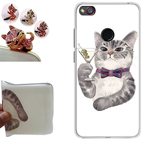 ZTE nubia Z11 mini Custodia,ZTE nubia Z11 mini Cover, Gallery88 [Tappi Anti-polvere] Custodia in TPU Gel Silicone Case per ZTE nubia Z11 mini -(Cat con una tazza)