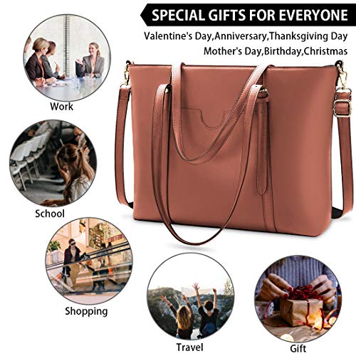 NUBILY Borse Tote da donna Borsa Tracolla Donna per Computerda 15.6 Pollici Pelle PU Borsa Lavoro Donna Grande Borsa Shopper Business Shopper Caffè Marrone