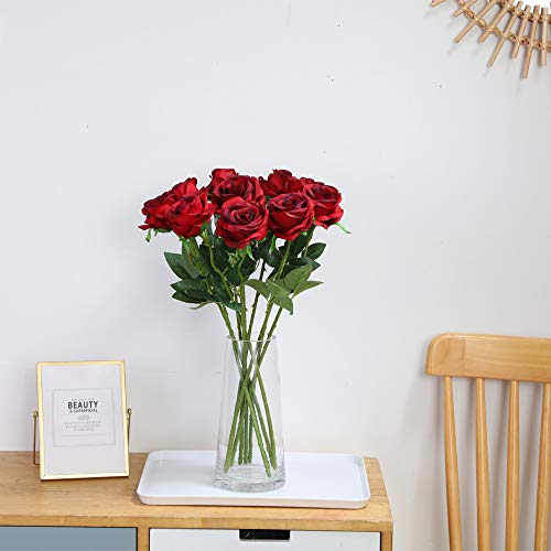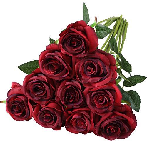 Nubry Artificial Silk Rose Fiore di Seta Artificiale Singolo Stelo Rose Finta Lifelike per Matrimonio Bouquet Floreale Floreali Home Party Decorazione centrotavola, 10pcs (Gradiente Rosso Scuro)