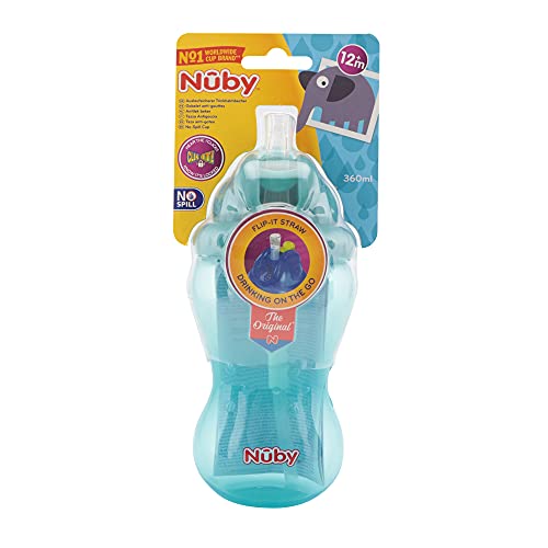 Nuby Borraccia Flip it con cannuccia in silicone - borraccia per bambini antigoccia dai 12 mesi - turchese