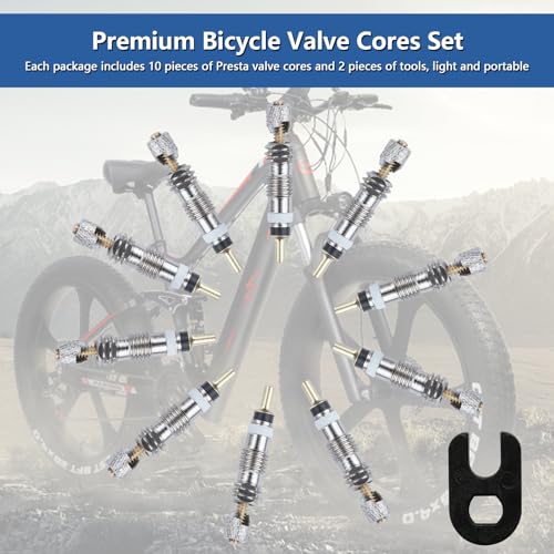 Nucleo Valvola Bici, 12 Pezzi Valve Core Remover Repair Tool, Kit sostituzione Nucleo Valvola Presta,Kit sostituzione Nucleo Valvola Presta per Presta Schrader con Presta Corpi Valvola e Cap