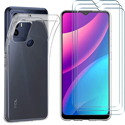 NUCNOK Cover per TCL 305/TCL 30 SE/TCL 306 + [3 Pezzi] Pellicola Protettiva Vetro Temperato,Silicone Custodia Molle di TPU Morbido AntiGraffio AntiCaduta Case (Trasparente)