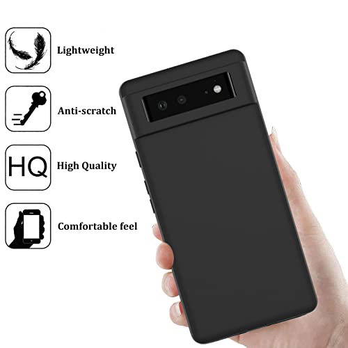 NUCNOK Cover per Google Pixel 6a + [3 Pezzi] Pellicola Vetro Temperato,Silicone Custodia Scrub Molle di TPU Morbido AntiGraffio AntiCaduta Case(Nero)