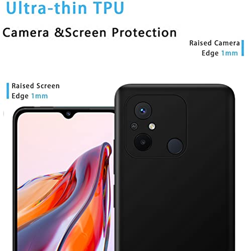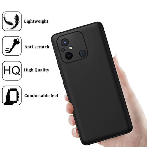 NUCNOK Cover per Xiaomi Redmi 12C + [3 Pezzi] Pellicola Vetro Temperato,Silicone Custodia Scrub Molle di TPU Morbido AntiGraffio AntiCaduta Case(Nero)