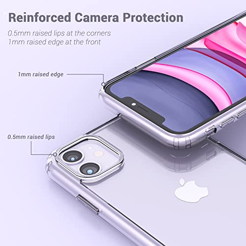 NUDGE Cover per iPhone 11(6,1") con 3pcs Vetro Temperato, Anti-Ingiallimento Silicone Telaio TPU Trasparente di Fascia Alta Airbag Anticaduta, Parte Posteriore Rigida del PC Custodia Case