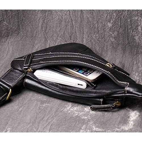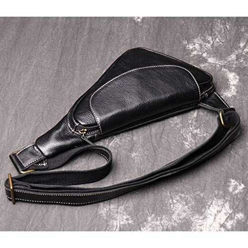 NUELLO Vera Pelle Uomo Sling Bag,Moda Impermeabile Zaino Monospalla Borsa A Tracolla Crossbody Borsa Toracica Zaino Casual per Outdoor Sportivo Ciclismo Viaggio-Nero
