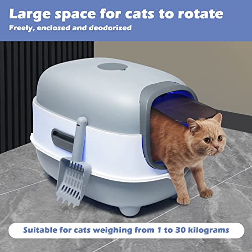 NUKied Lettiera per gatti con gabbia automatica a prova di sabbia, funzione di sterilizzazione e deodorizzazione, con paletta inclusa, lettiera extra large per gatti, facile da pulire
