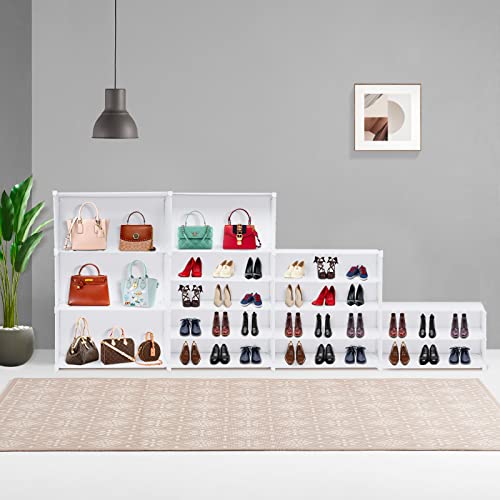 La scarpiera può contenere circa 18-30 paia di scarpe (18 paia di scarpe per adulti, 30 paia di scarpe per bambini) a seconda del numero di cubi. Abbastanza per riporre tutte le scarpe per adulti, come stivali, tacchi normali, scarpe da ginnastica. Dimensioni: 61 cm x 31 cm x 93 cm