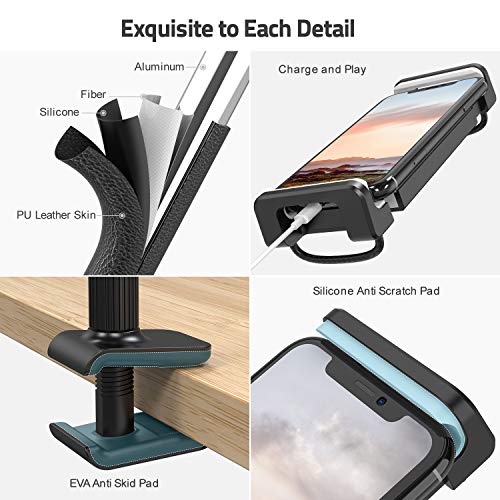 【Rotazione 360°】 Il supporto del supporto collo oca è 360 grado, in modo da poter regolare l'angolo di visione in orizzontale, verticale o qualsiasi angolo che ti piace, che consente di creare combinazioni di lunghezze diverse. La rotazione di 360 gradi e le braccia flessibili facilitano il posizionamento del telefono alla distanza e all'angolazione ideali per una visione comoda.