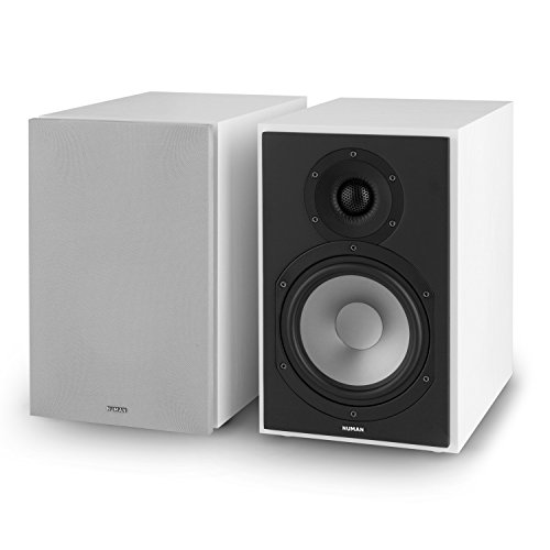 NUMAN Reference 802 Coppia Casse Altoparlanti da Scaffale (2 x 80 Watt, Diffusori a 2 vie, 4 Ohm, Schiuma Termo Acustica, MDF, Bass Reflex, Piedi in Silicone) bianco incl. Cover argento