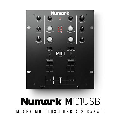 Numark M101USB - Mixer 2 Canali a Rack per DJ con EQ a 2 Bande, Interfaccia Audio Integrata, Ingresso Microfonico e Crossfader Sostituibile