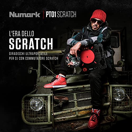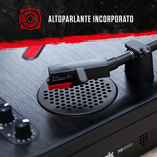 Numark PT01 Scratch - Giradischi Portatile per DJ con Commutatore Scratch, Casse, Alimentazione a Batteria/Rete, Selezione RPM e Connettività USB