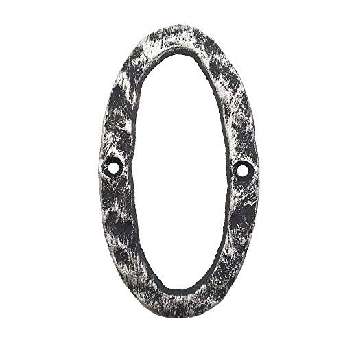 Numeri civici in ghisa, numero di indirizzo casa da 15,5 cm, solido e resistente, facile da installare con viti coordinate, finitura argento antico (numero 0)