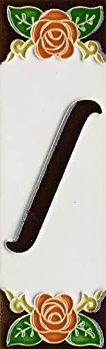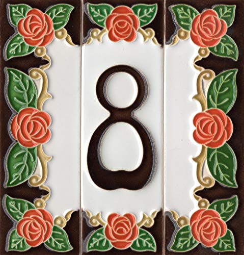 Numeri civici, numeri italiani e lettere in ceramica con motivo rosa arancione, dimensioni delle piastrelle: 15 cm x 5 cm (numero 7)
