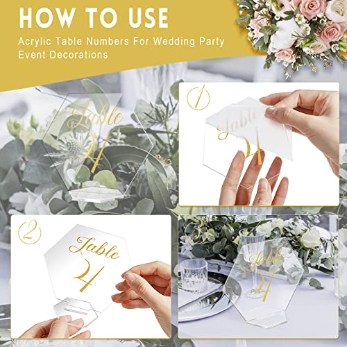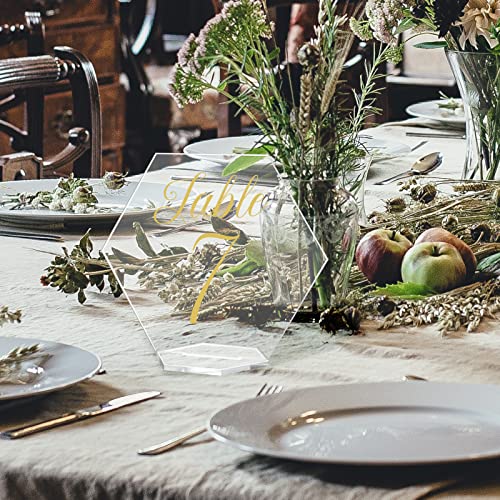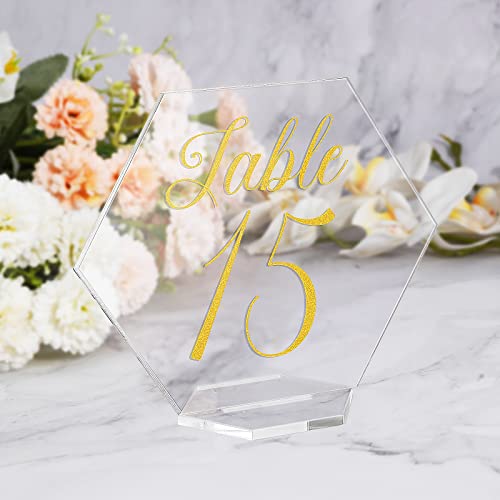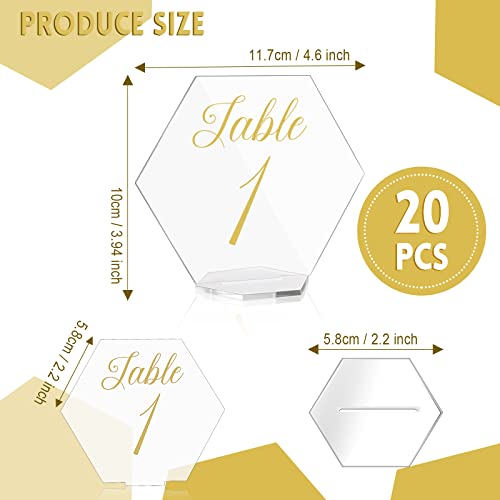 20 numeri da tavolo in acrilico con supporti esagonali trasparenti per posti a sedere stabile cartello grafico per matrimoni, ricevimenti, eventi, decorazioni da tavola riutilizzabili (10.2x11.7 cm)