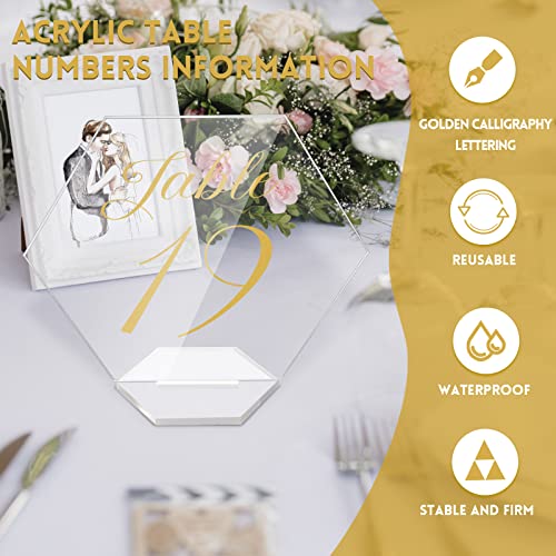 Ampiamente applicabile: i numeri da tavolo in acrilico 1-20 sono perfetti per varie occasioni come matrimoni, feste di fidanzamento, addio al nubilato, baby shower, anniversari, celebrazioni, feste o qualsiasi altro evento. Inoltre, questi cartelli con numeri da tavolo possono essere utilizzati come cartelli di benvenuto, biglietti e regali segni, cartelli a barra aperta, visualizzazione di schede di posizione di ricevimento, carte numeriche da tavolo, menu e altri oggetti, ecc.