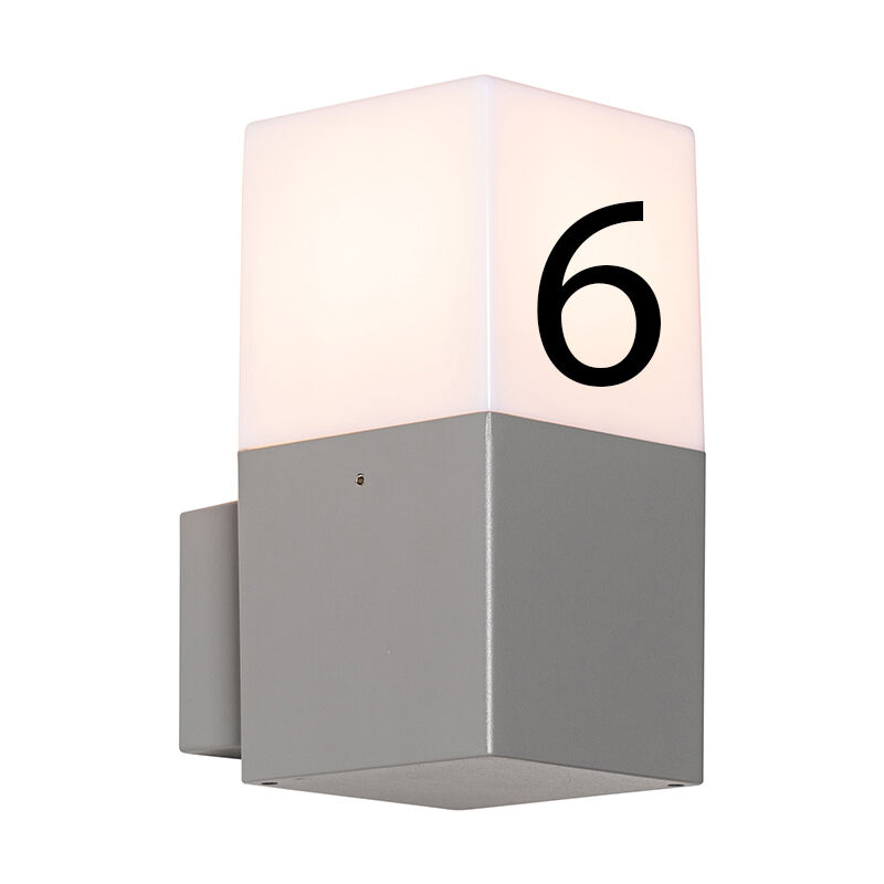 QAZQA Applique per esterno moderna grigia IP44 con numero civico - DENMARK Lampada da parete di alta qualità realizzata in alluminio di alta qualità con rivestimento in polvere di poliestere e paralume in plastica. Viene fornita con un foglio di adesivi super pratico per aggiungere il numero civico alla lampada. Numero civico e illuminazione di qualità in un unico prodotto! La Denmark ha un'altezza di 17 cm e una lunghezza di 8,5 cm. Ha una profondità di 11,5 cm. La piastra di montaggio per la parete esterna ha una lunghezza e una larghezza di 6,5 cm. Perfettamente resistente alla pioggia grazie al valore IP di IP44. Puoi posizionarla accanto alla porta d'ingresso come lampada d'atmosfera o come luce funzionale quando torni a casa tardi. Con una lampadina che si adatta a un attacco E27 (max. 13W), puoi completare la Denmark. La lampada può anche essere smorzata con un dimmer esterno. Crea una luce piacevole a casa con la Denmark! Portalampada: E27 . Max 1 x 15 W, 230 V Adatto a: LED
