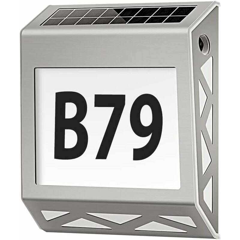 Numero civico solare in acciaio inossidabile: il numero civico solare illuminerà la strada di casa. Il numero civico a energia solare si accende automaticamente quando il cielo si fa buio. 8 LED consentono ai pedoni di vedere chiaramente il loro numero civico. Dimensioni (L x P x A): 200 x 180 x 50 mm, materiale: ABS + acciaio inox, classe di protezione: IP54 Impermeabile e durevole: la luce solare del numero civico è realizzata in acciaio inossidabile di alta qualità e ABS. È robusto, resistente al calore e agli agenti atmosferici. Con il livello di protezione IP54 professionale, può resistere a tutti tipi di condizioni atmosferiche avverse. Questo crea un ambiente luminoso e sicuro per i passanti anche nei giorni di pioggia Interruttore crepuscolare: rilevamento automatico giorno o notte, ricarica tramite pannello solare durante il giorno, si accende automaticamente di notte. Posiziona semplicemente il numero civico solare al sole, con il pannello solare rivolto verso l'esterno la