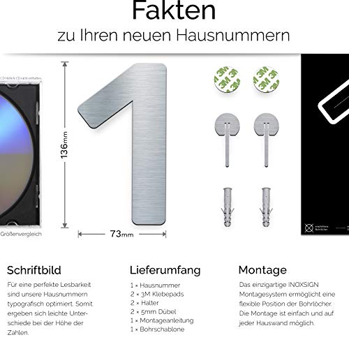 ⭐ FACILE + MONTAGGIO FLESSIBILE - Il montaggio dei nostri numeri civici è rapido e semplice in pochi minuti. Tutto il MATERIALE DI MONTAGGIO è INCLUSIVO. Per il montaggio sono necessari un trapano, un martello e una piccola pinza. Grazie al sistema di montaggio protetto INOXSIGN, il numero civico può essere montato in modo flessibile. Il numero civico può essere incollato su superfici lisce (ad es. cassette delle lettere).
