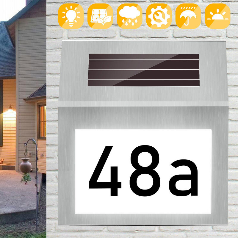 I nostri prodotti sono realizzati con materiali pregiati e di alta qualità. Durante il giorno, i pannelli solari assorbono la luce del sole per caricare la batteria integrata. Quando è buio, le 2 lampade a LED si accendono automaticamente grazie all'interruttore crepuscolare integrato. Il numero civico solare è dotato anche di un interruttore che può essere comandato manualmente. Se necessario, è possibile utilizzare questa funzione anche per chiudere direttamente il numero civico. Semplice ed elegante: La luce solare per indirizzi con identificazione digitale chiara è una luce per numeri civici nuova e moderna. Con una luce bianca brillante, il numero civico può essere evidenziato con forza anche al buio. Può aiutare i visitatori, i veicoli di emergenza e i corrieri a trovare facilmente la vostra posizione. Facile da installare: È possibile installare l'applique di sicurezza alla parete con le viti in dotazione. Non è necessario alcun cablaggio. La confezione viene fornita con 2