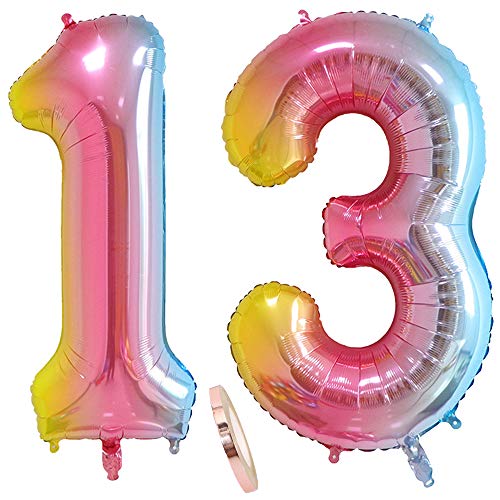 2 Numero di Palloncini 13, Numeri 13 Anni Compleanno Decorazioni Arcobaleno Rosa Bambina Ragazza,Colorati Pink 40" Gigante Foil Elio Palloncino Gonfiabile Balloons Happy Birthday Festa (XXXL 100cm)