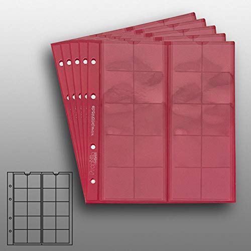 5 Numismatic Prophila Kobra Coin Sheets, 20 Pockets up to 34 mm Ø, e.g. 5 DM, 2 DM