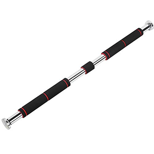 Nunafey Barra per trazioni, Barra per Allenamento Multifunzionale in Acciaio al Carbonio, Appeso Portatile per Il Mento della casa Tiri la Palestra in su(Black And Red 80-130CM)