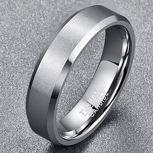 NUNCAD 6mm Anello Donna Uomo Argento in Tungsteno Semplice Lucidatura per Matrimonio Anniversario Fede Taglia 24.5