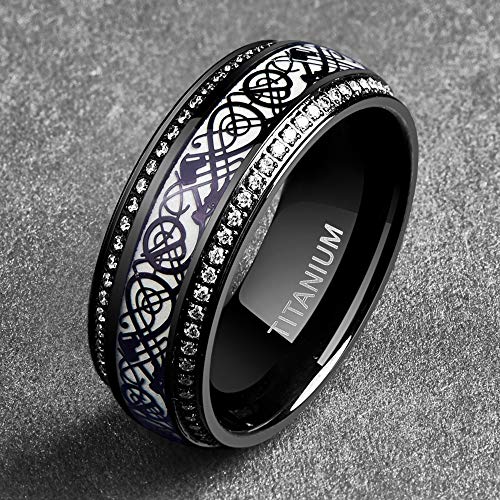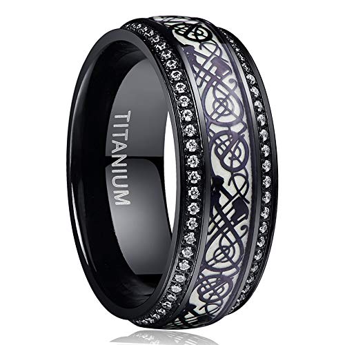 NUNCAD Anello con Motivo Drago Nero in Acciaio con Materiale Fluorescente + Anello Ricordo Zircone/Anello Amicizia/Anello Elegante 8mm Formato (20)