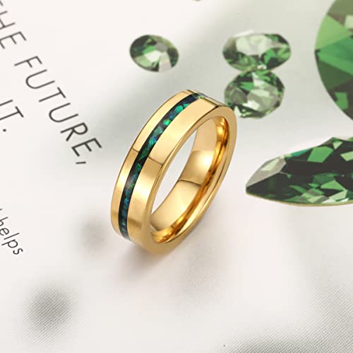 NUNCAD Anello Oro Uomo Donna Carburo di Tungsteno con Opale Sintetico Verde,Anello Fede per Fidanzamento Coppia Promessa Nuziale Anniversari Taglie(22)