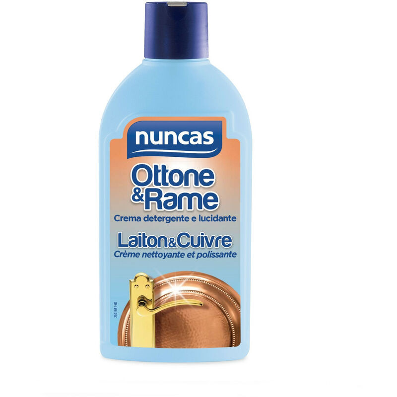 Ottone & Rame Detergente e lucidante in crema per ottone, rame e bronzo Eleganti e delicati, ottone e rame sono due metalli che donano alla casa un tocco di stile unico. La loro naturale propensione al viraggio di colore (dal rosa all'arancio, sino al verde) rende necessaria una routine di pulizia specifica che deve essere fatta per forza con un prodotto acido unito ad un'azione meccanica . Ecco perché Nuncas ha studiato due prodotti dedicati: uno per la pulizia straordinaria e l'altro per quella quotidiana. Ottone & Rame è una crema per la lucidatura di tutti gli oggetti e le superfici in ottone, rame e bronzo . La sua formulazione contiene una sottilissima polvere abrasiva che rimuove dalla superficie impronte e ingiallimento dovuto al contatto con cibi e bevande, senza graffiare. La sua formula arricchita di olii minerali antistatici protegge dalla polvere e dai depositi di calcare, donando agli oggetti l'originale lucidità e brillantezza.