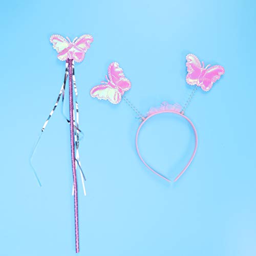 NUOBESTY Costume Tutu Fata Principessa con Ali di Farfalla Fata Bacchetta Fascia E Gonna Tutu per Ragazza Vestire Performance Rosa