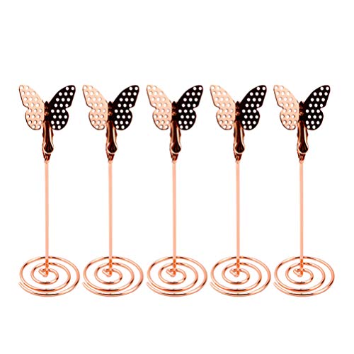 NUOBESTY 5 Pezzi Segnaposto Metallo Forma di Farfalla Memo Clip Supporto Numero Posto Titolare Portafoto Memo Holder Decorazione Tavolo Bomboniera per Matrimonio Compleanno Festa Natale