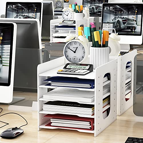 NUODWELL Organizer portacorrispondenza regolabile, per documenti, da scrivania, a 5 ripiani, classificatore fogli A4, per scuola, casa, ufficio (5-Tier)
