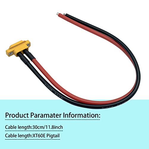 Nuofany 2 pezzi Amass XT60E-M spina maschio connettore della batteria montabile treccia, XT60 connettore di montaggio a pannello con cavo da 30 cm per RC Lipo batteria FPV Racing Aircraft Drone